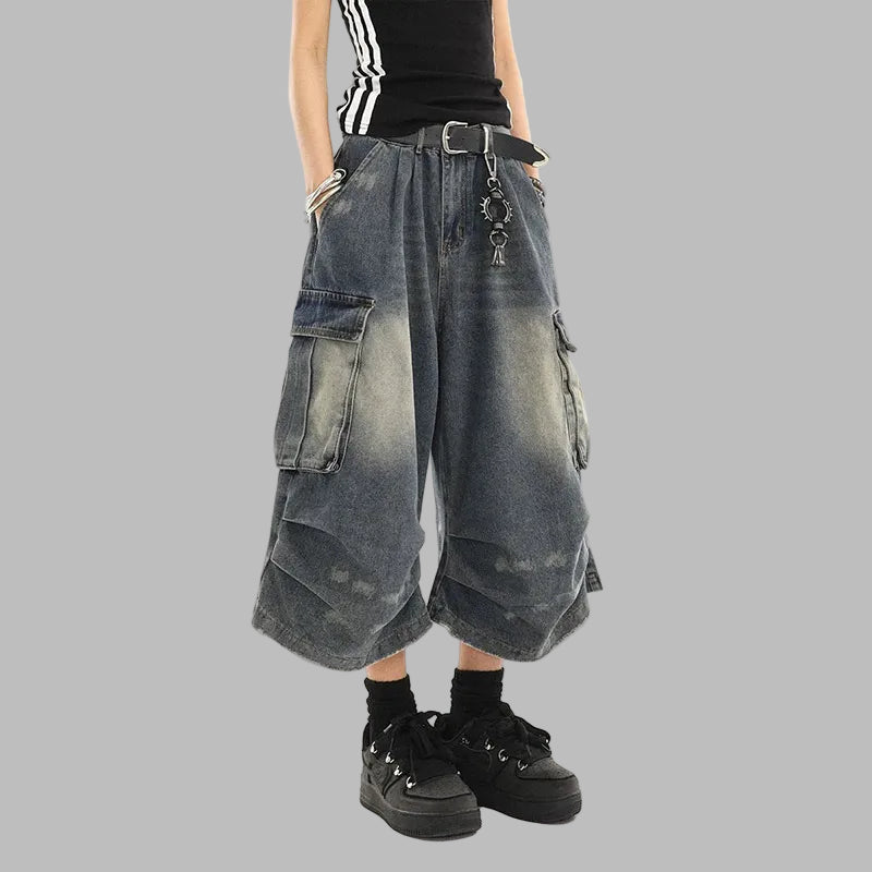 Pantalones cortos anchos de mujer estilo grunge cargo de mezclilla