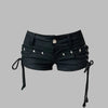 Pantalones Cortos Góticos con Cordones - Shorts Negros con Calaveras