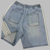 Pantalones cortos grises estilo grunge rock con franjas blancas y texto