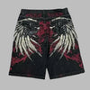 Pantalones Cortos Negros Grunge Metal con Alas y Diseños Burdeos