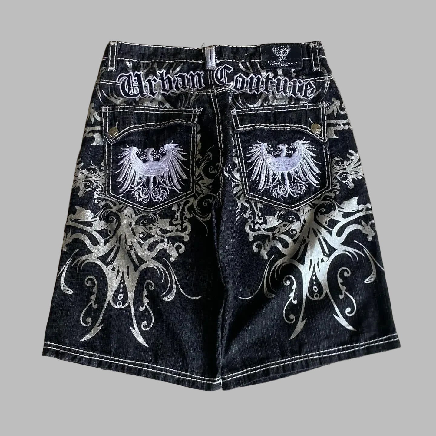 Pantalones Cortos Vaqueros Grunge Metal con Águilas y Diseños Tribales