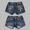 Pantalones Cortos Vaqueros Rock Grunge con Cruces Metálicas y Tachuelas