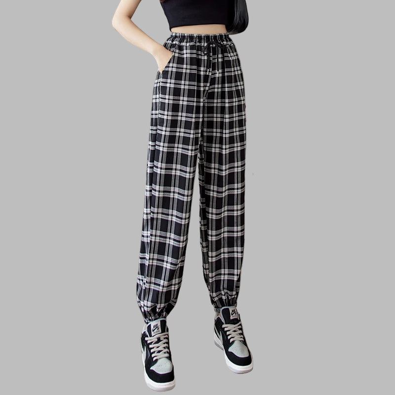 Pantalones Joggers Jirai Kei de Cuadros Blanco y Negro