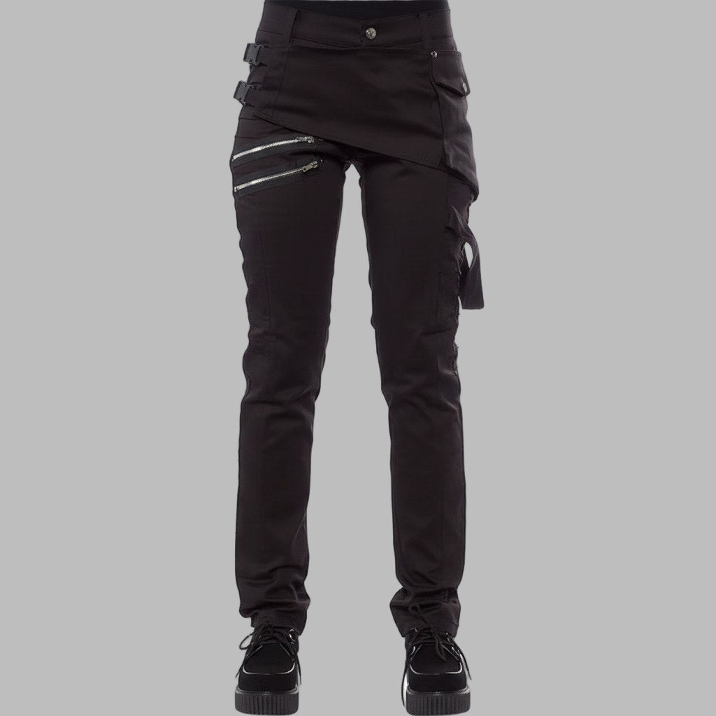 Pantalones Negros Punk Rock con Cremalleras Steampunk