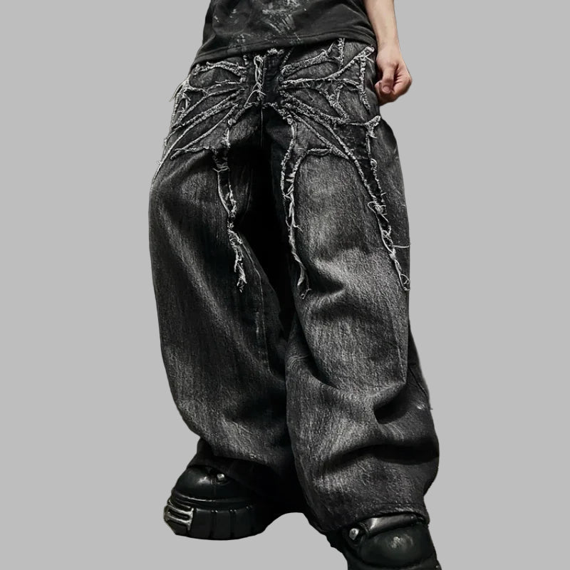 Pantalones vaqueros grises desgastados con cadenas estilo baggy punk unisex