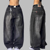 Pantalones vaqueros grises estilo metal con cadenas baggy grunge