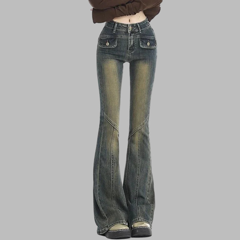 Pantalones vaqueros grises vintage estilo rock flare con desgastes