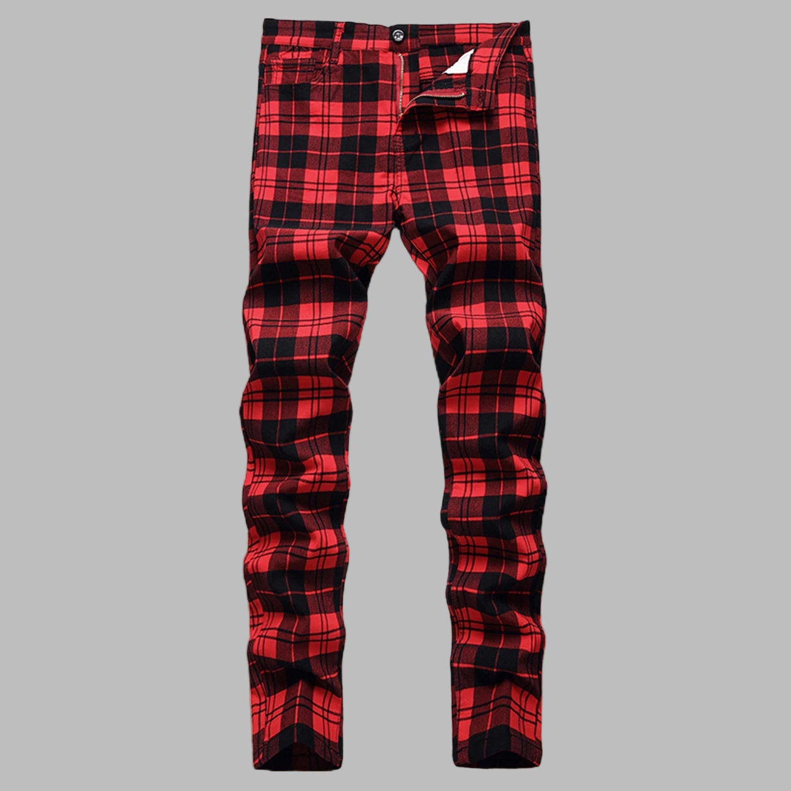 Pantalones Vintage Rockeros de Cuadros Rojo y Negro Metal