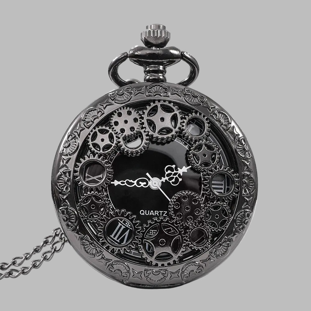 Reloj de Bolsillo Steampunk Negro con Engranajes Mecánicos