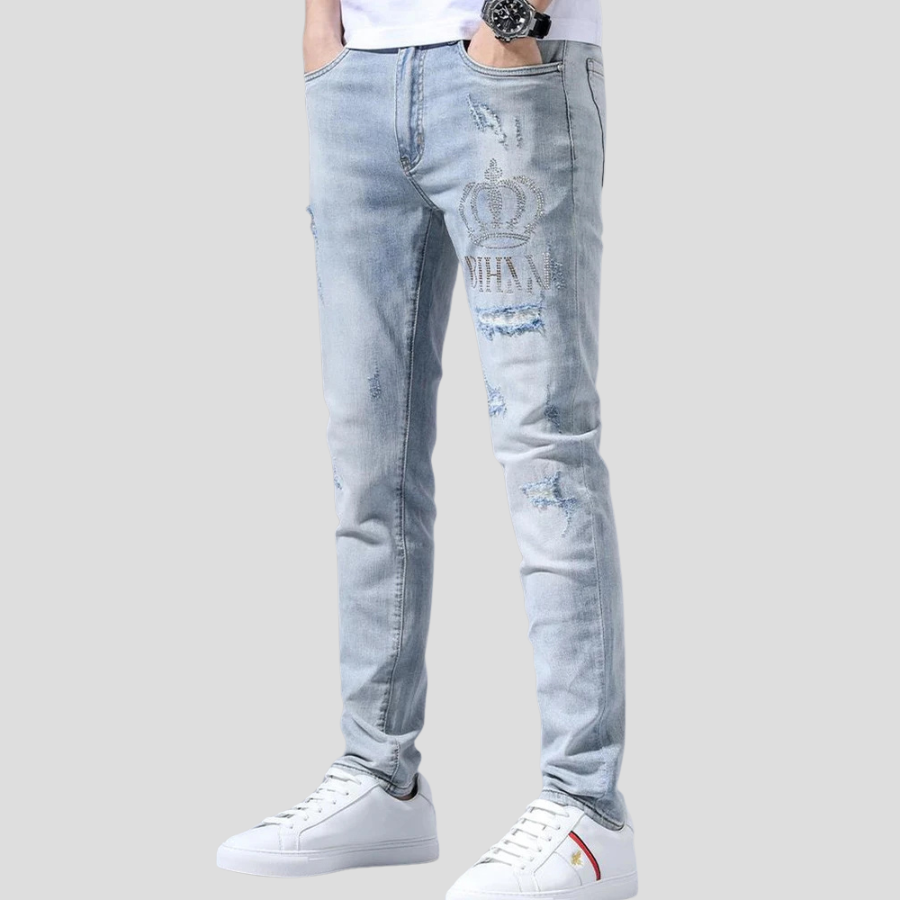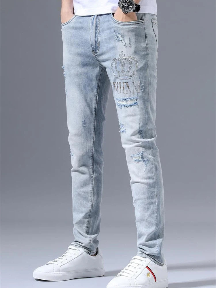 Rock Vaqueros Desgastados con Corona Azul Claro 36