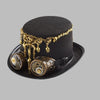 Sombrero de copa Steampunk negro con calaveras doradas y gafas