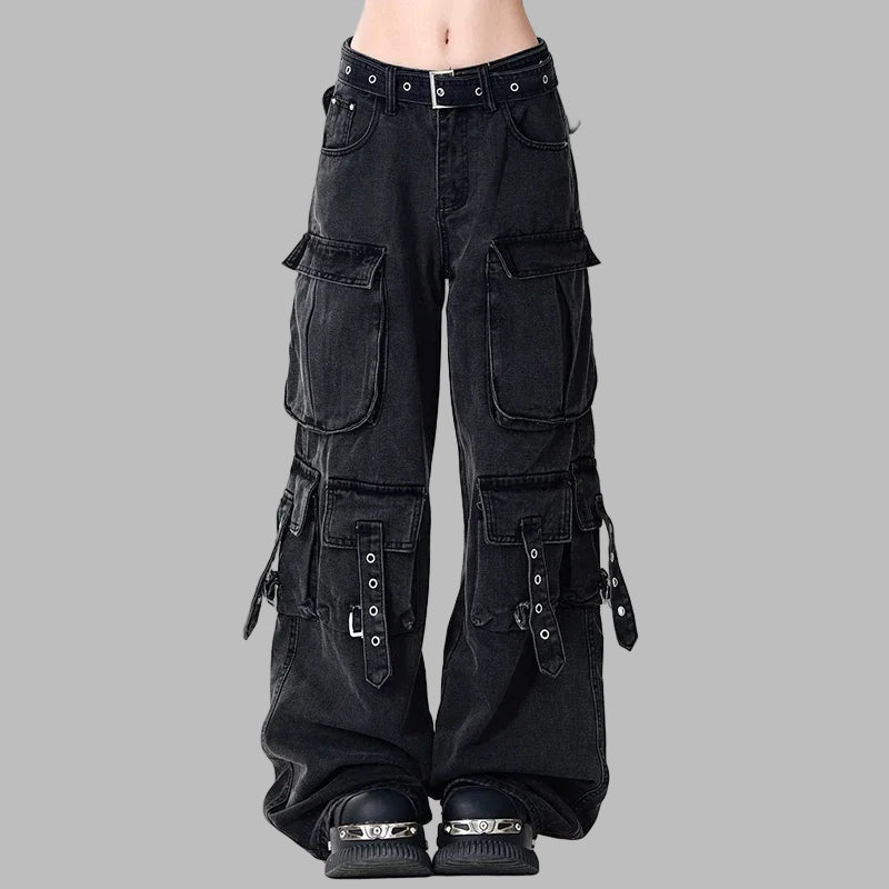 Spodnie Gotyckie Czarne Kieszenie Paski Sprzączki Cargo Ver opciones