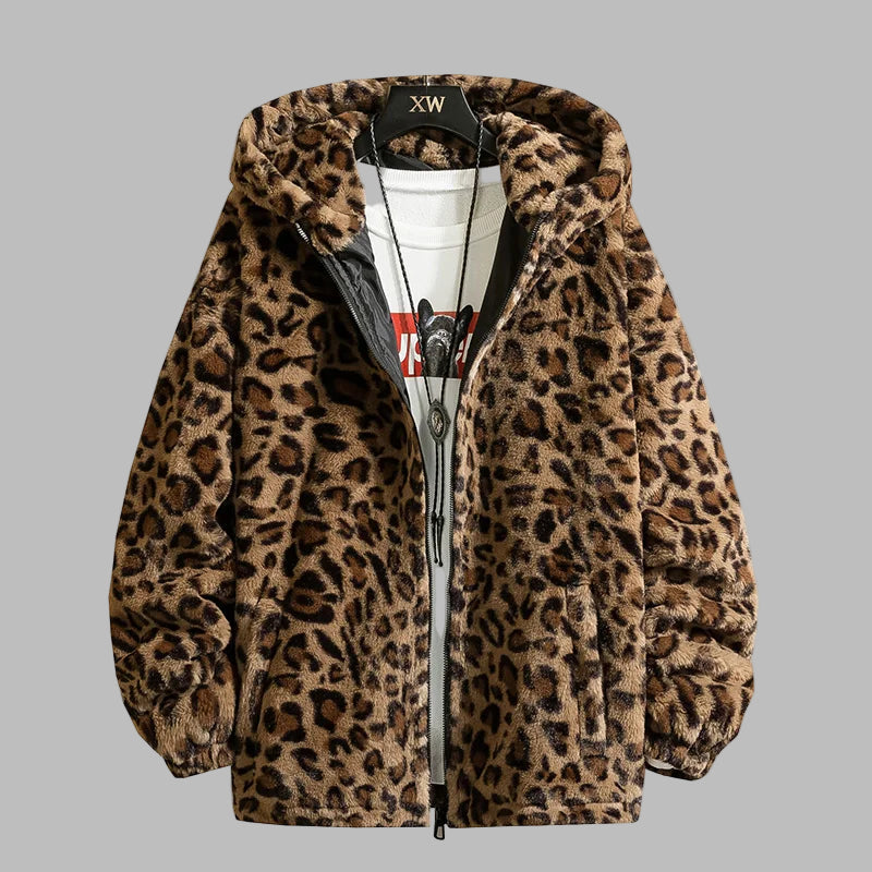 Sudadera Marrón con Capucha Leopard Rock de Felpa Cálida
