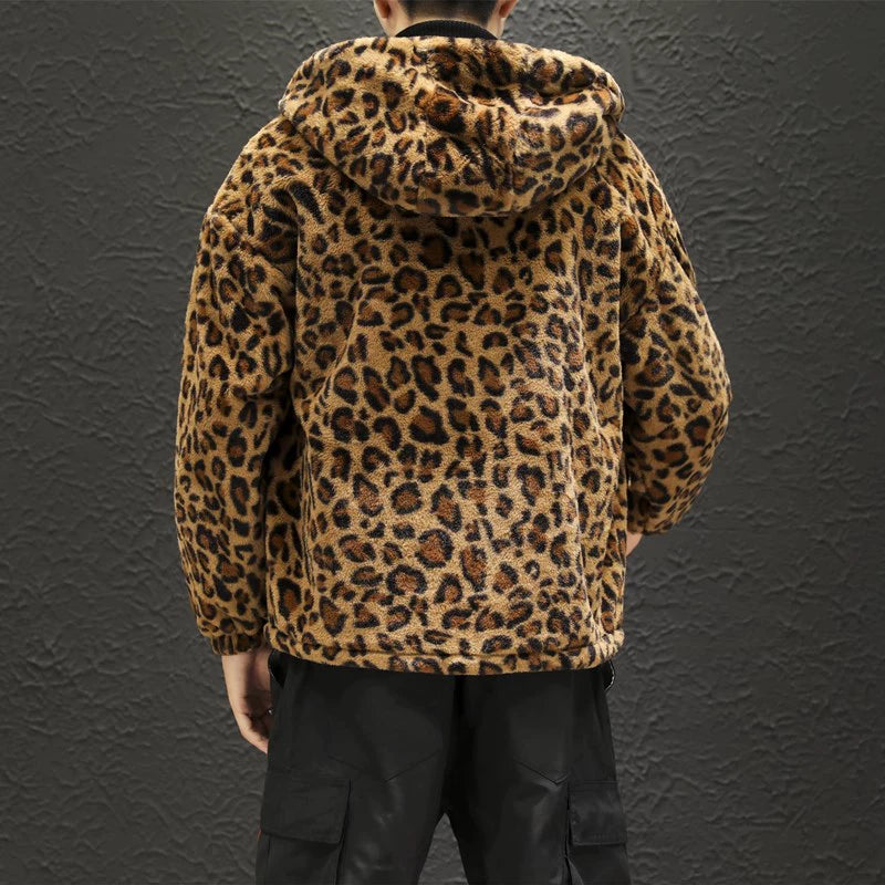 Sudadera de Leopardo Rock Marrón con Capucha de Felpa Cálida