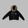 Sudadera Negra Metal con Capucha de Piel Sintética Sinestesia Premium