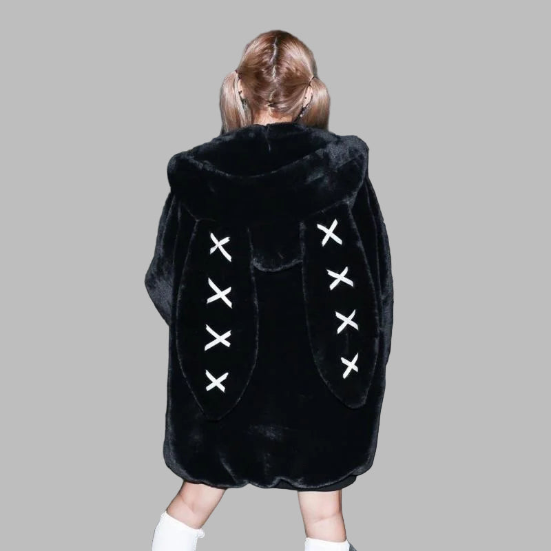 Sudadera Punk Negra de Felpa con Cruces y Capucha
