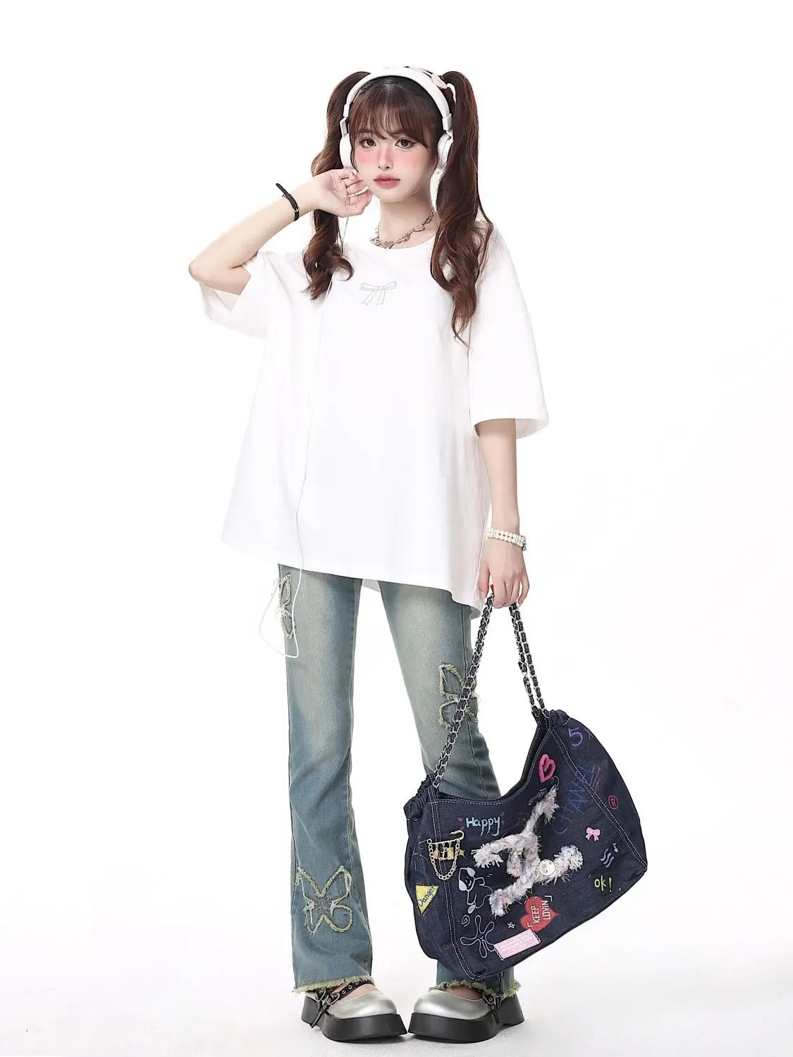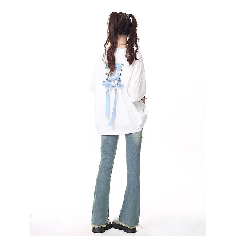 Sudadera Rock con Cordones en la Espalda y Lazo Azul Blanca Ver opciones