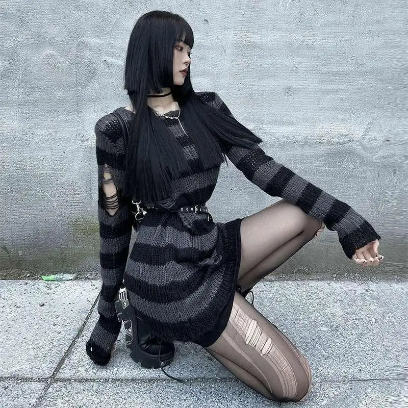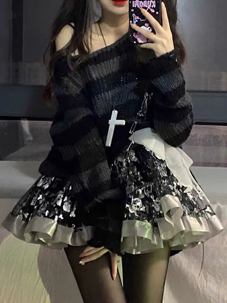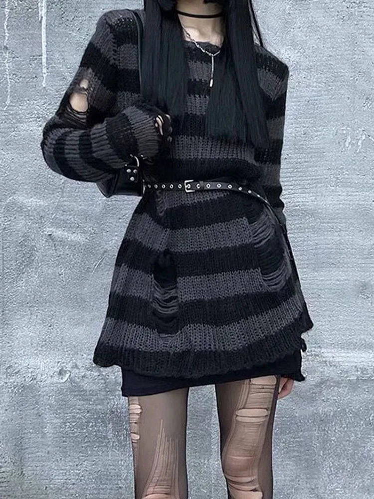 Suéter Punk Negro con Agujeros y Cruz Oversize