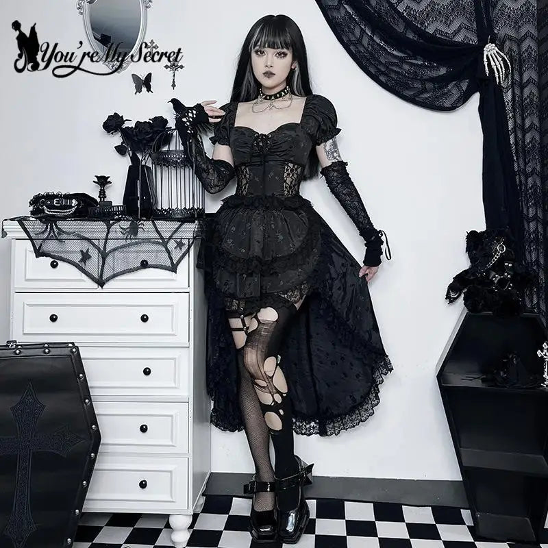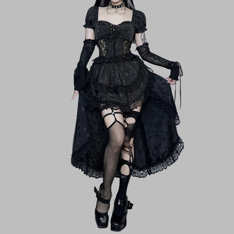 Vestido Gótico Punk Negro Asimétrico de Encaje Ver opciones