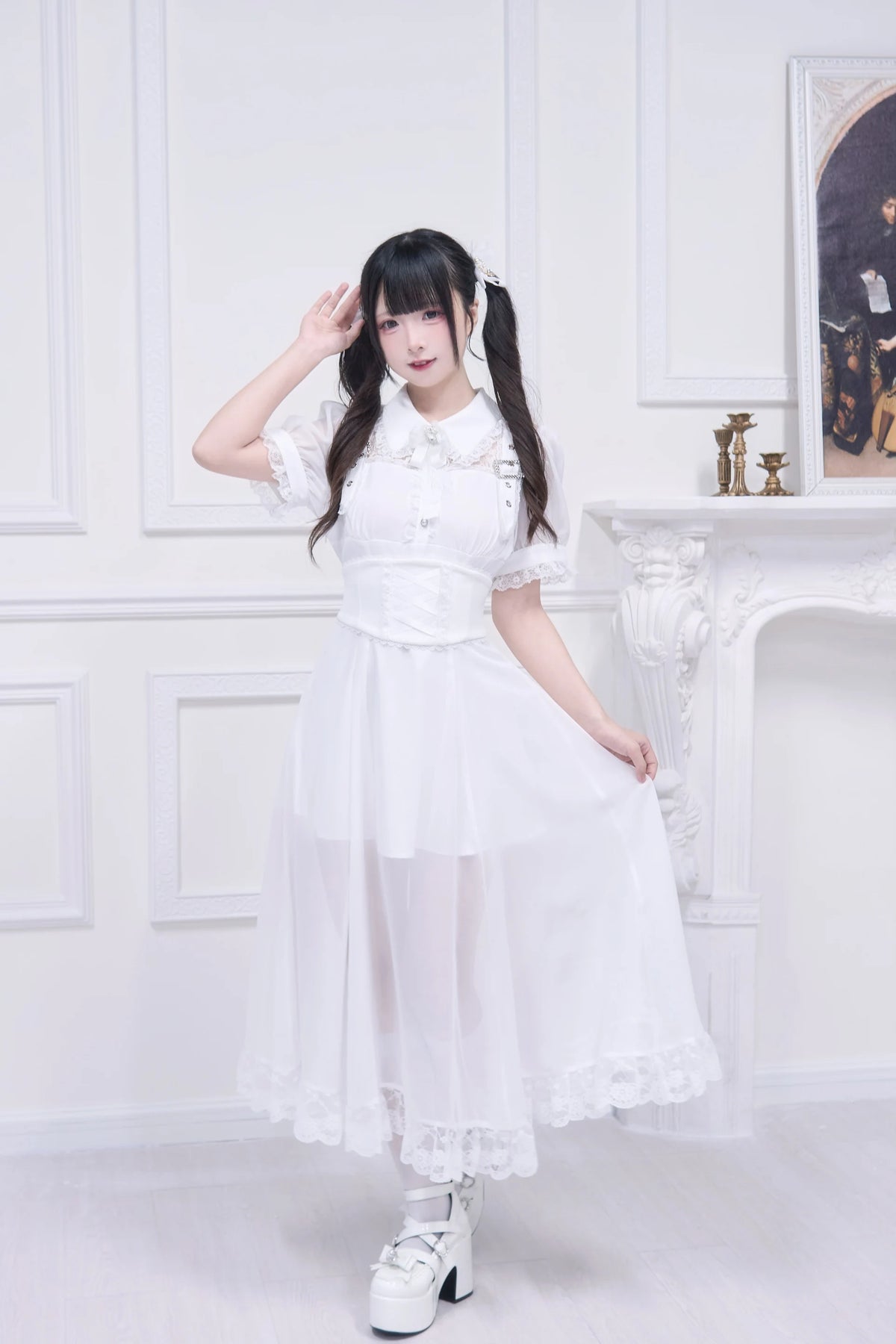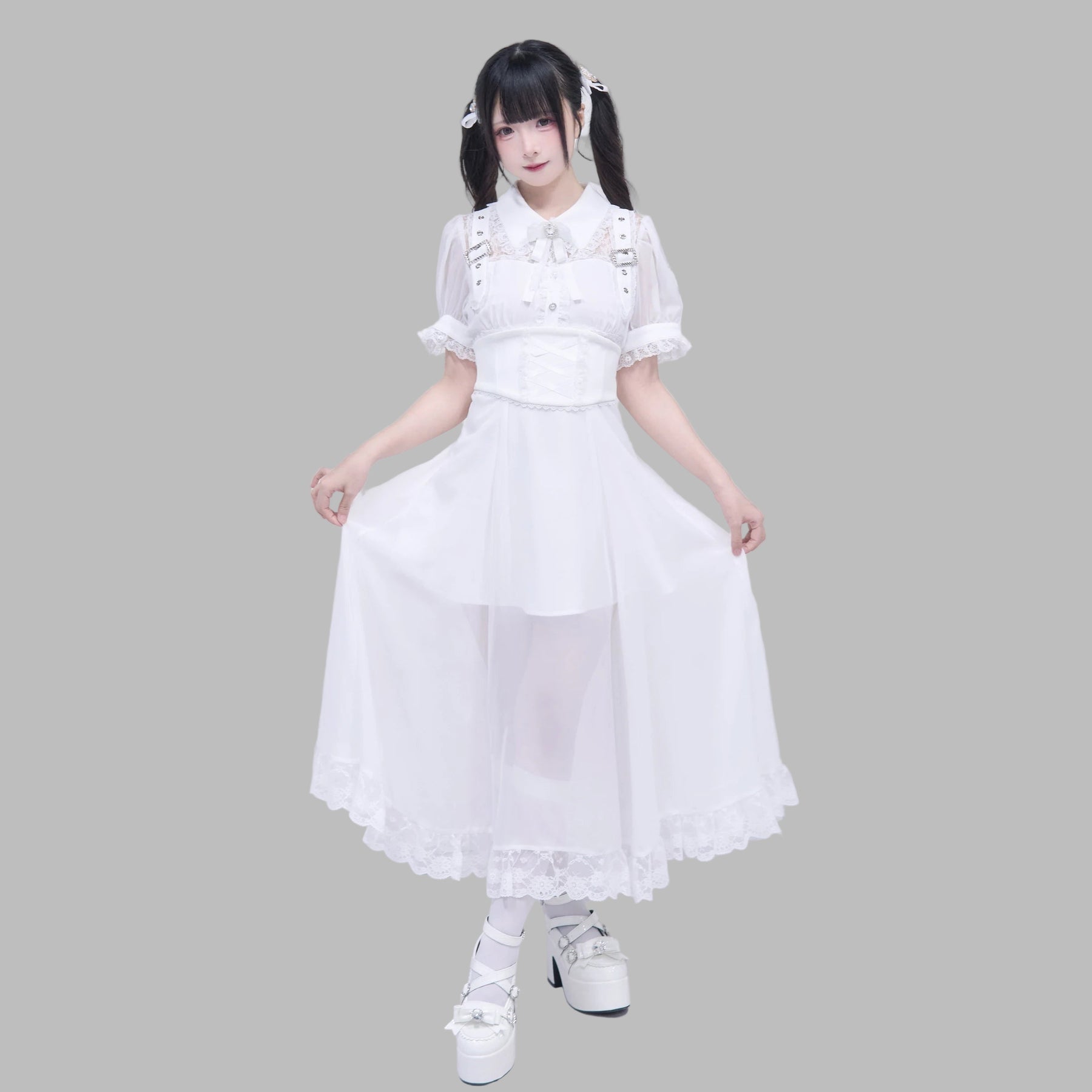 Vestido Largo Blanco con Volantes Kawaii Jirai Kei