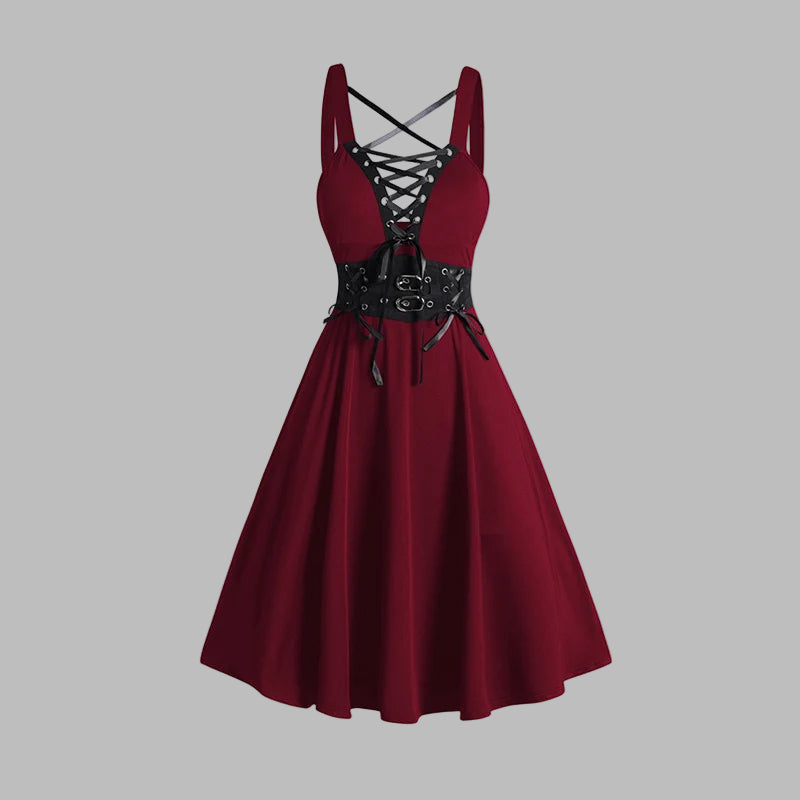 Vestido Punk Rock Burdeos con Corsé y Cordones
