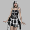 Vestido Punk Rock de Cuadros con Tirantes y Cordones