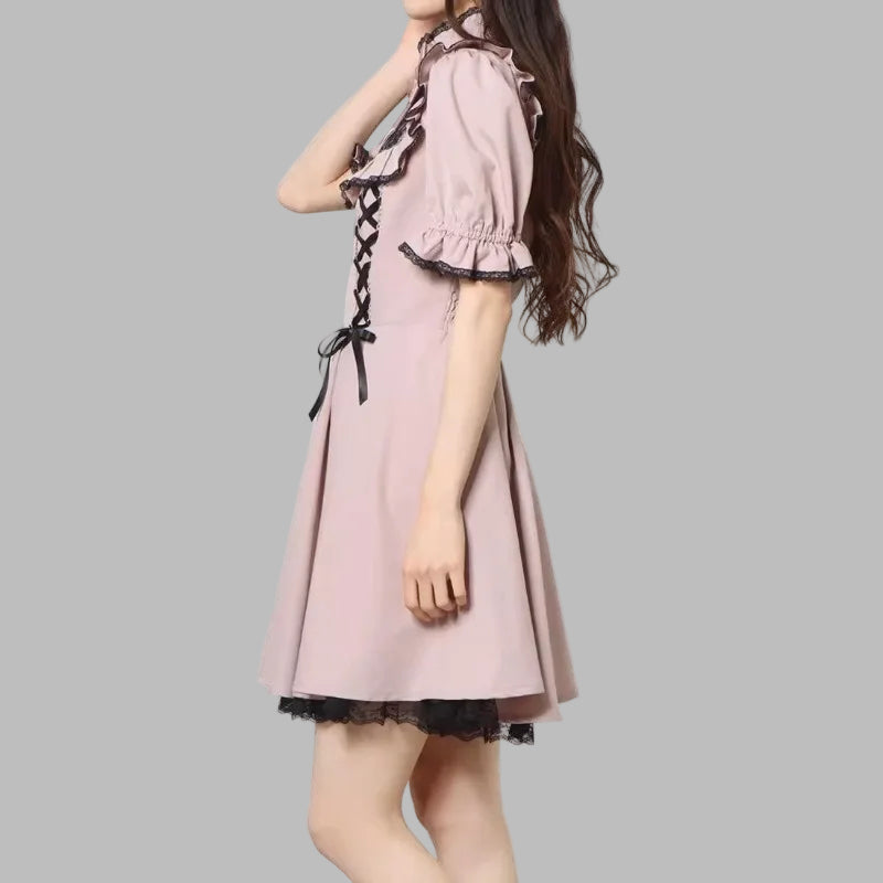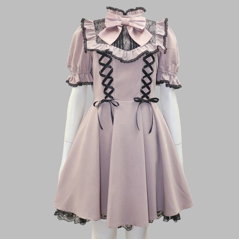 Vestido Punk Rock Lila con Doble Cordón y Lazos