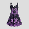 Vestido Punk Rock Morado con Calaveras y Adornos Góticos