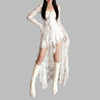 Vestido Blanco de Estilo Rock con Encaje y Mangas Largas