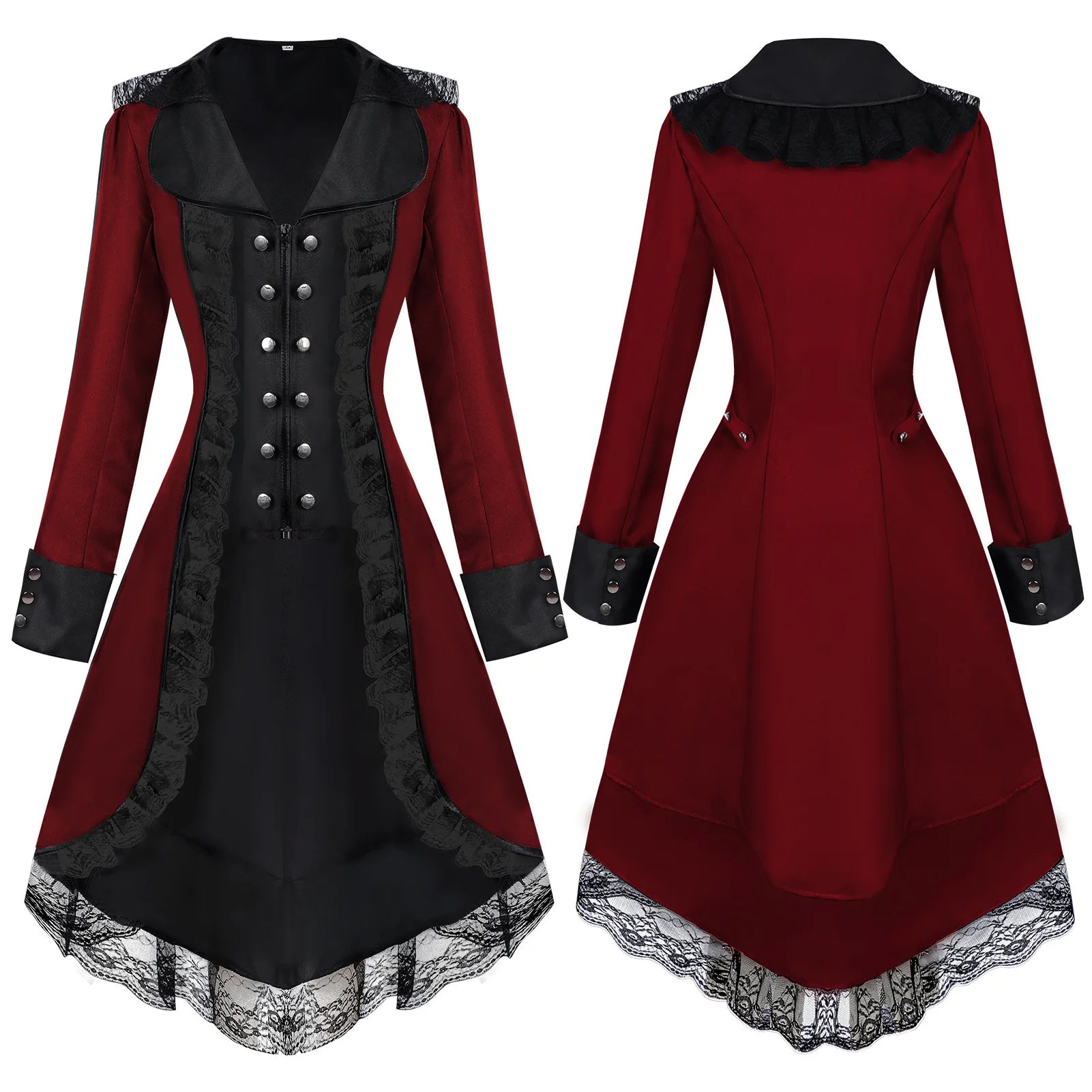Vestido Steampunk Burdeos con Corsé Negro y Encaje Ver opciones