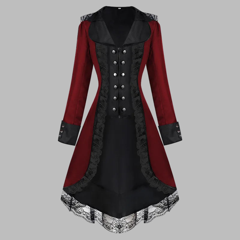 Vestido Steampunk Burdeos con Corsé Negro y Encaje