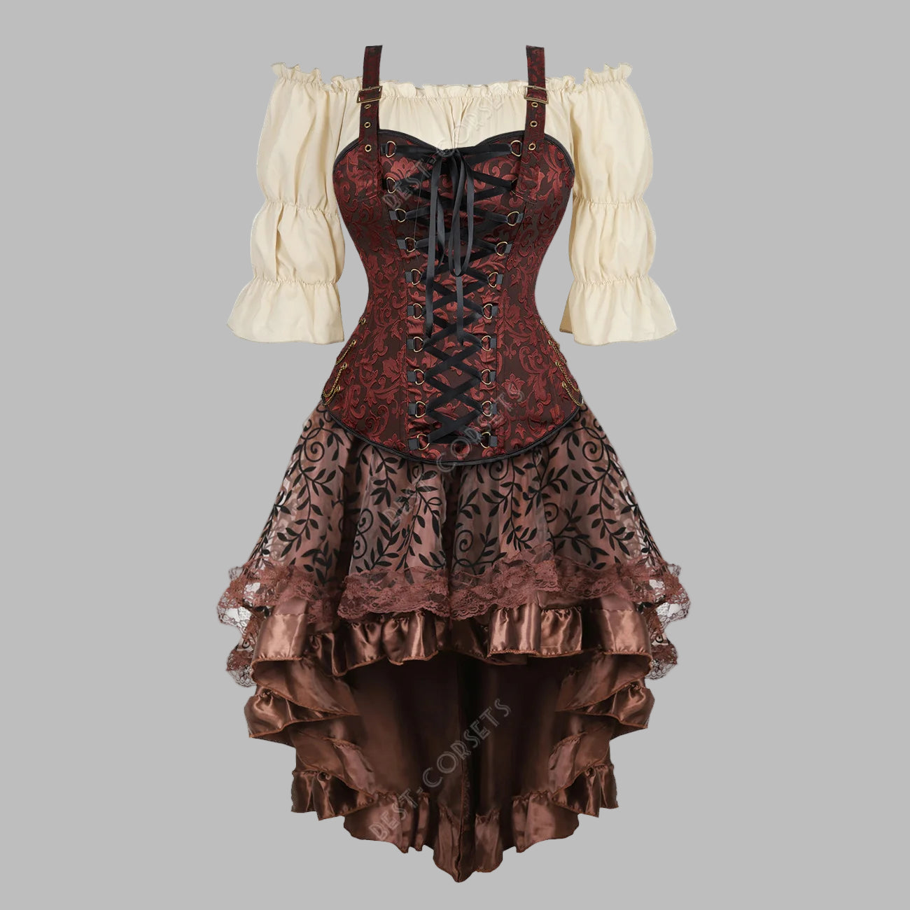 Vestido Steampunk con Corsé Burdeos con Cordones y Encaje